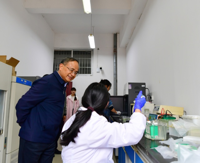 随后,李国金前往生命科学与资源环境学院,实地调研了农学基地的作物培育、技术推广等情况,深入各科研实验室(中心)查看仪器设备配置、科研项目进展及团队建设成效,与相关专业负责人围绕学科建设、科研创新、成果转化等内容展开深入交流。