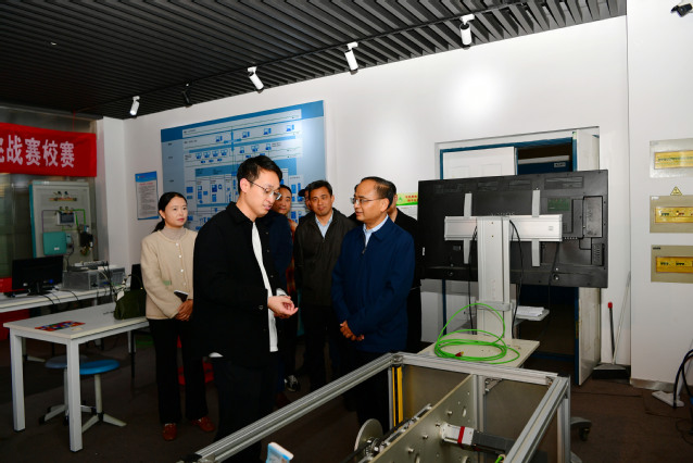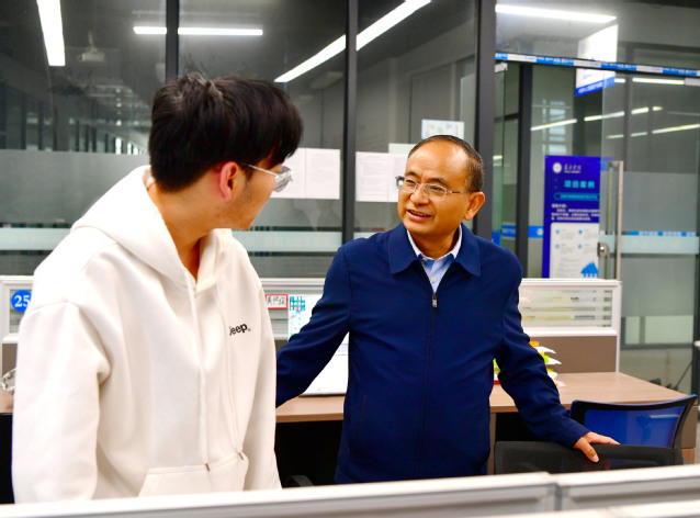 在智能制造与材料化工学院,李国金首先走进学院专业实验室,实地考察仪器设备配置、运行维护及科研项目推进情况并与在场专任教师、科研人员细致交流,详细询问关键技术攻关难点、成果转化进展及产学研合作成效,对学院在新材料研发、智能制造技术创新等领域取得的成绩给予肯定。